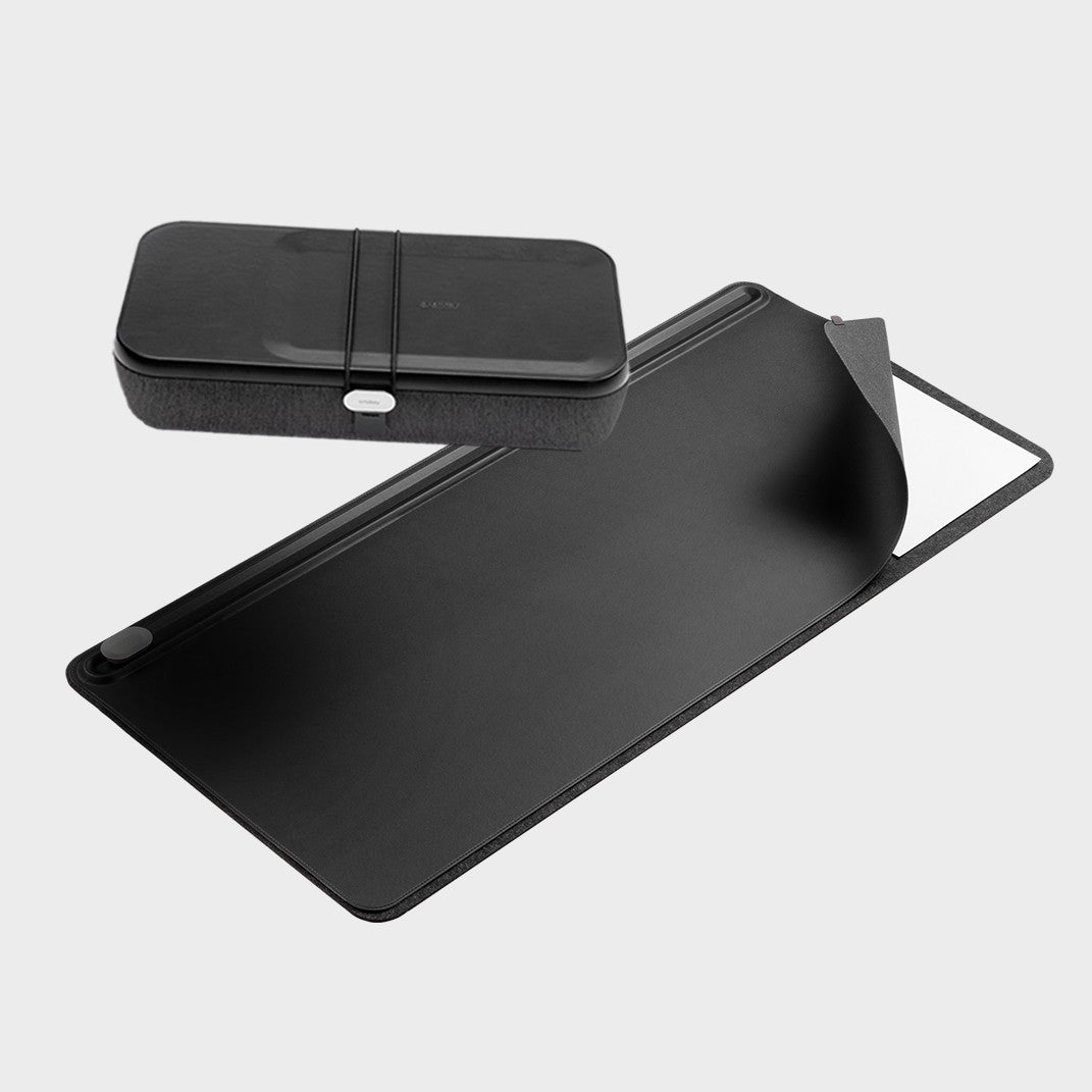 Elevate your workspace with style and functionality. The Desk Mat and Nest v2 provide a sleek home for your essentials, complete with a portable charging pad and cable holder to keep your setup effortlessly organised.